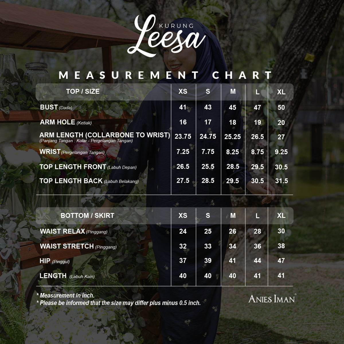 - All measurements provided are approximate and may vary by up to 1 inch due to the nature of our manufacturing process. Please ensure you check your body measurements carefully before making a purchase.