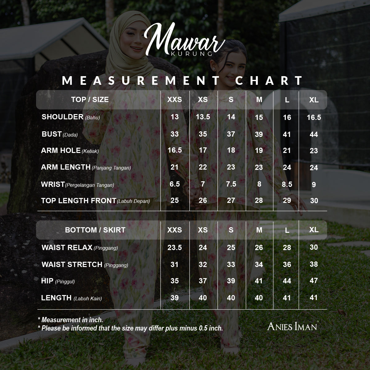 • All measurements provided are approximate and may vary by up to 1 inch due to the nature of our manufacturing process. Please ensure you check your body measurements carefully before making a purchase.