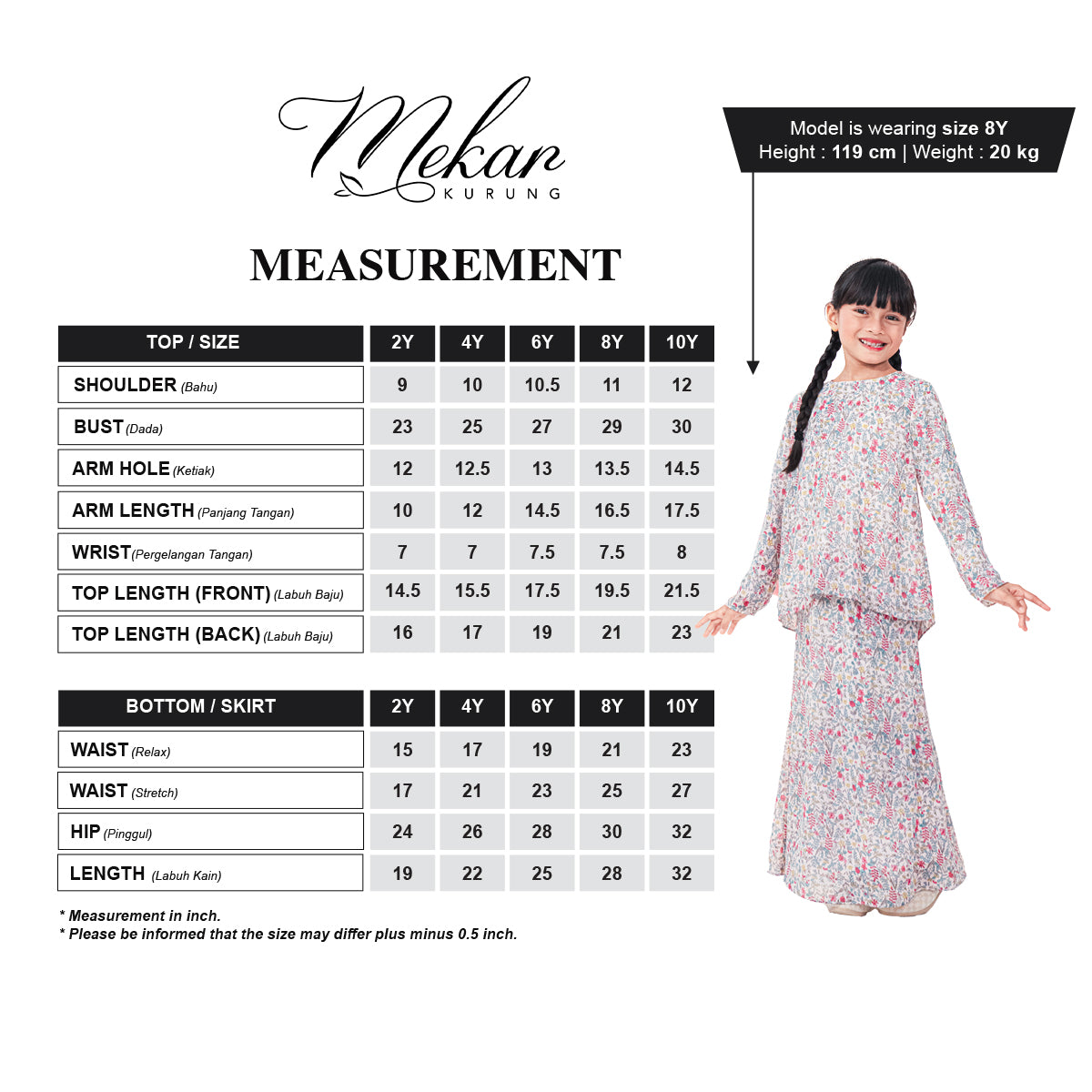 Measurement : refer to chart size provided
