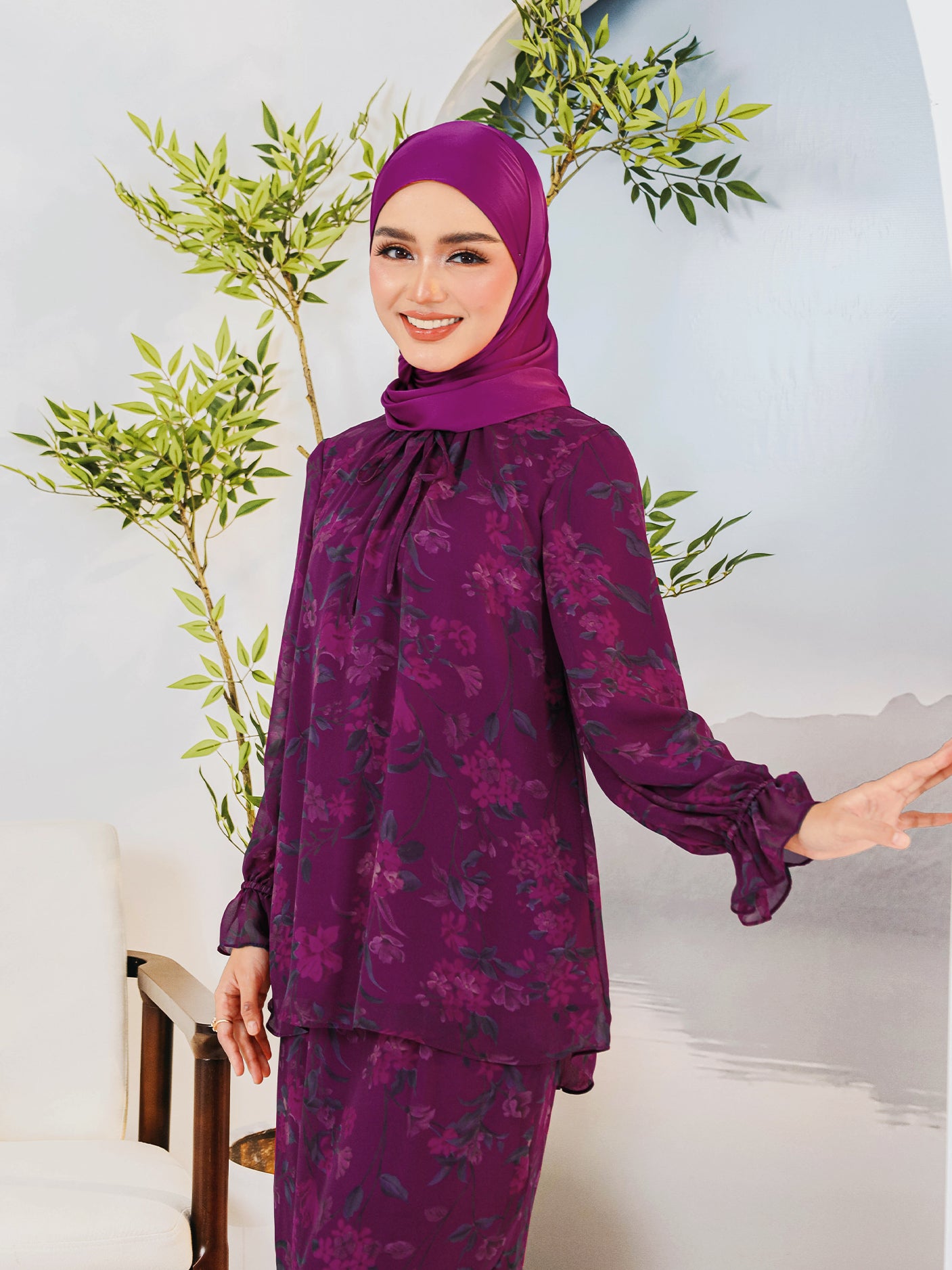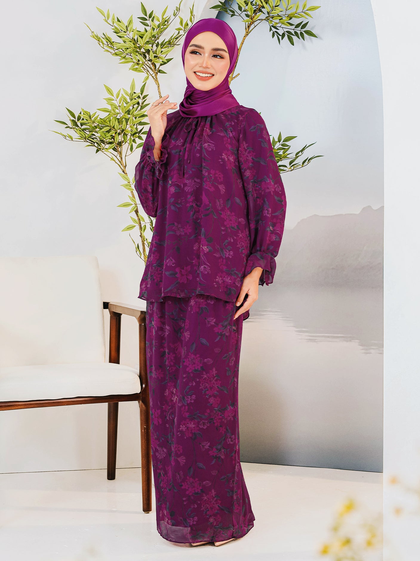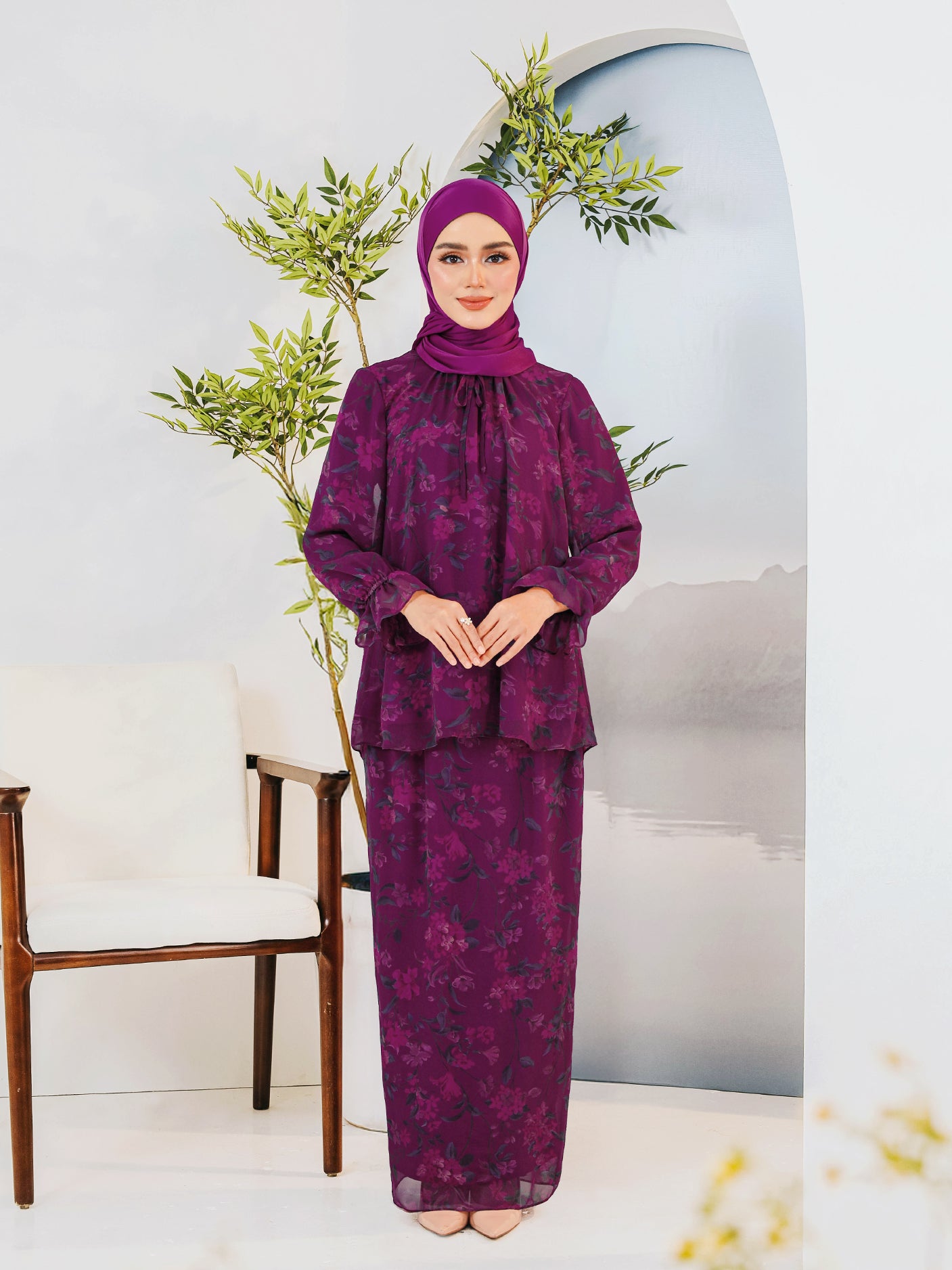 A stylish modern kurung set designed for elegance, comfort, and everyday practicality, perfect for festive celebrations.