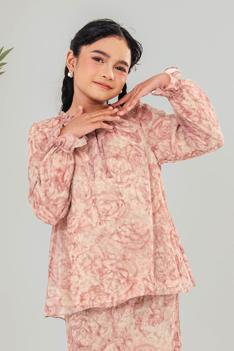 A charming modern kurung set for little ones, designed to combine comfort, modesty, and stylish elegance, perfect for festive celebrations.