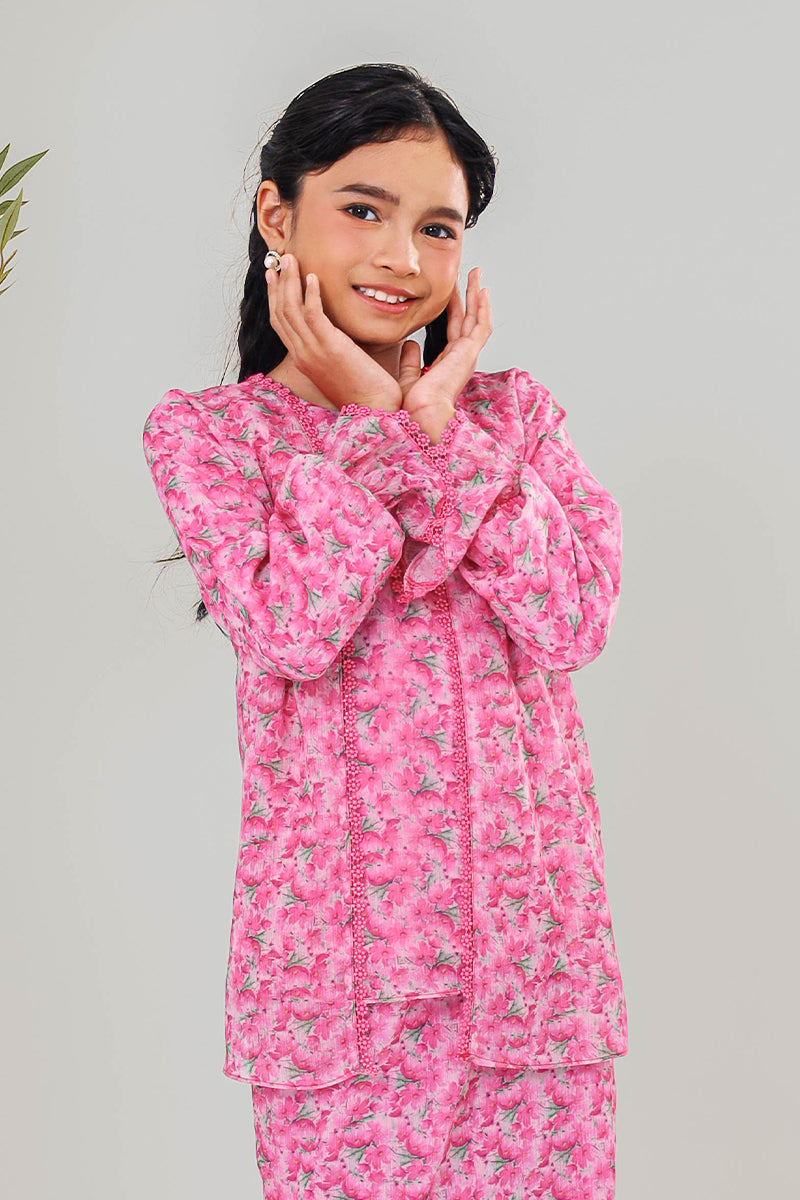 A charming modern Kebaya kurung set for little ones, designed for comfort, modesty, and festive elegance