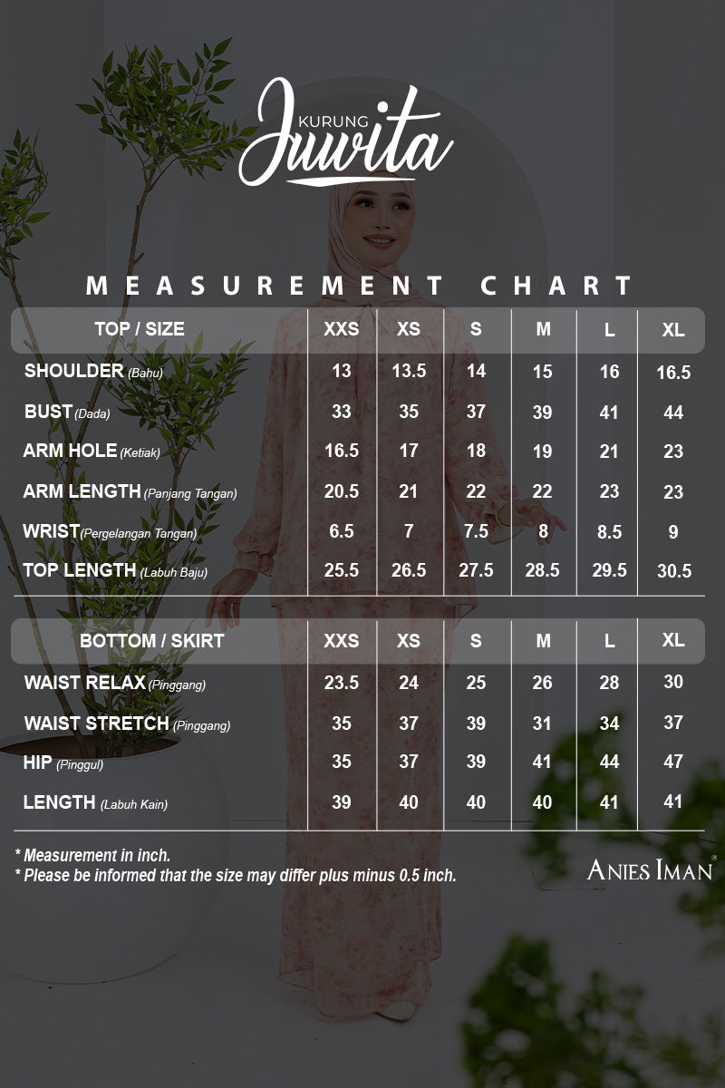 • All measurements provided are approximate and may vary by up to 1 inch due to the nature of our manufacturing process. Please ensure you check your body measurements carefully before making a purchase.